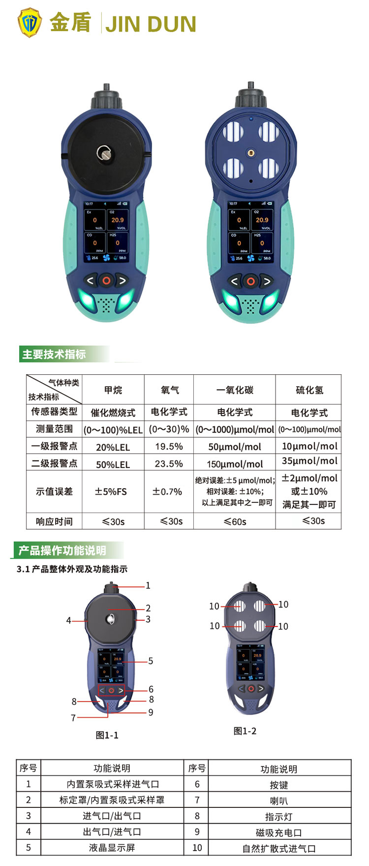 JD-BXJC4-D便携式气体检测仪是一款四合一气体检测仪,可实时连续检测环境中的可燃、氧气、一氧化碳、硫化氢等气体的浓度含量。仪表壳体采用防水设计的橡胶工艺,以满足恶劣环境的苛刻要求。气体检测仪采用泵吸式检测方式,敏感元件采用优质气体传感器,具有极好的灵敏度和出色的重复性;仪器采用嵌入式微机控制,操作简单,功能齐全,可靠性高,具有多种自适应能力。产品使用彩色图文液晶显示,直观清晰。JD-BXJC4-D便携式气体检测仪广泛适用于造纸厂,电厂,石油化工,市政环保,制药食品,采矿隧道,燃气仓储,货轮消防救援等多种开展工作需要预防爆炸、预防中毒的场所。